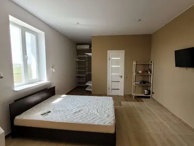 Третий номер представляет собой двухкомнатные апартаменты на первом этаже, отдельный вход. В номере полностью укомплектованная кухня, диван раздвижной, стол, стулья, стиральная машина, отдельно спальня 11 кв. М., в которой есть телевизор, двуспальная кровать.